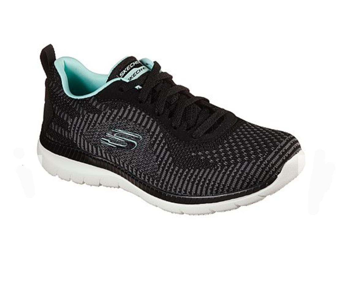 נעלי Skechers Arch Fit לנשים, בעיצוב שחור עם נגיעות טורקיז. מצוידות ברפידת Arch Fit תומכת בקשת, סוליה קלה וגמישה, ובד נושם לנוחות מקסימלית בהליכות ובשימוש יומיומי. מק"ט 149220/BKTQ