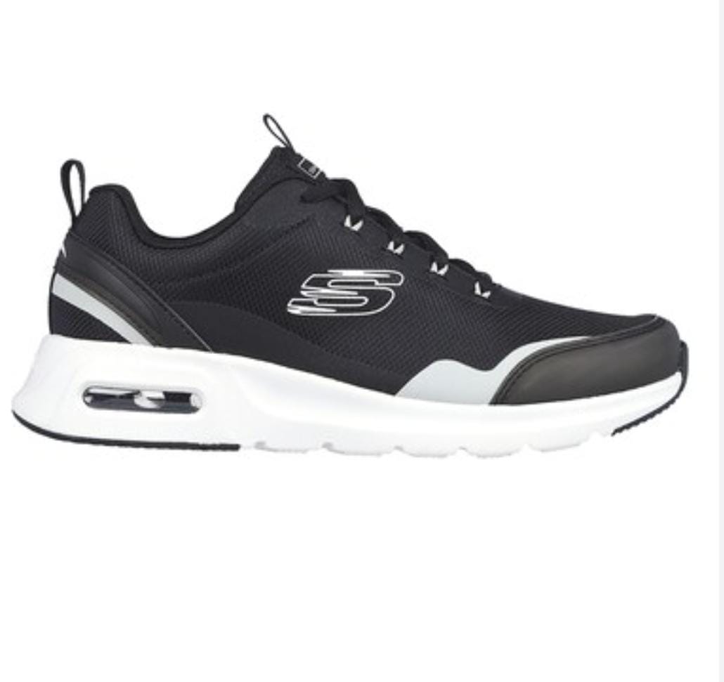 נעלי Skechers Arch Fit הן נעלי ספורט לנשים בצבע שחור-לבן, עם רפידת Arch Fit תומכת בקשת כף הרגל, סוליה גמישה וקלה, עיצוב נושם ונוח המתאים ליום-יום ולהליכות ארוכות.