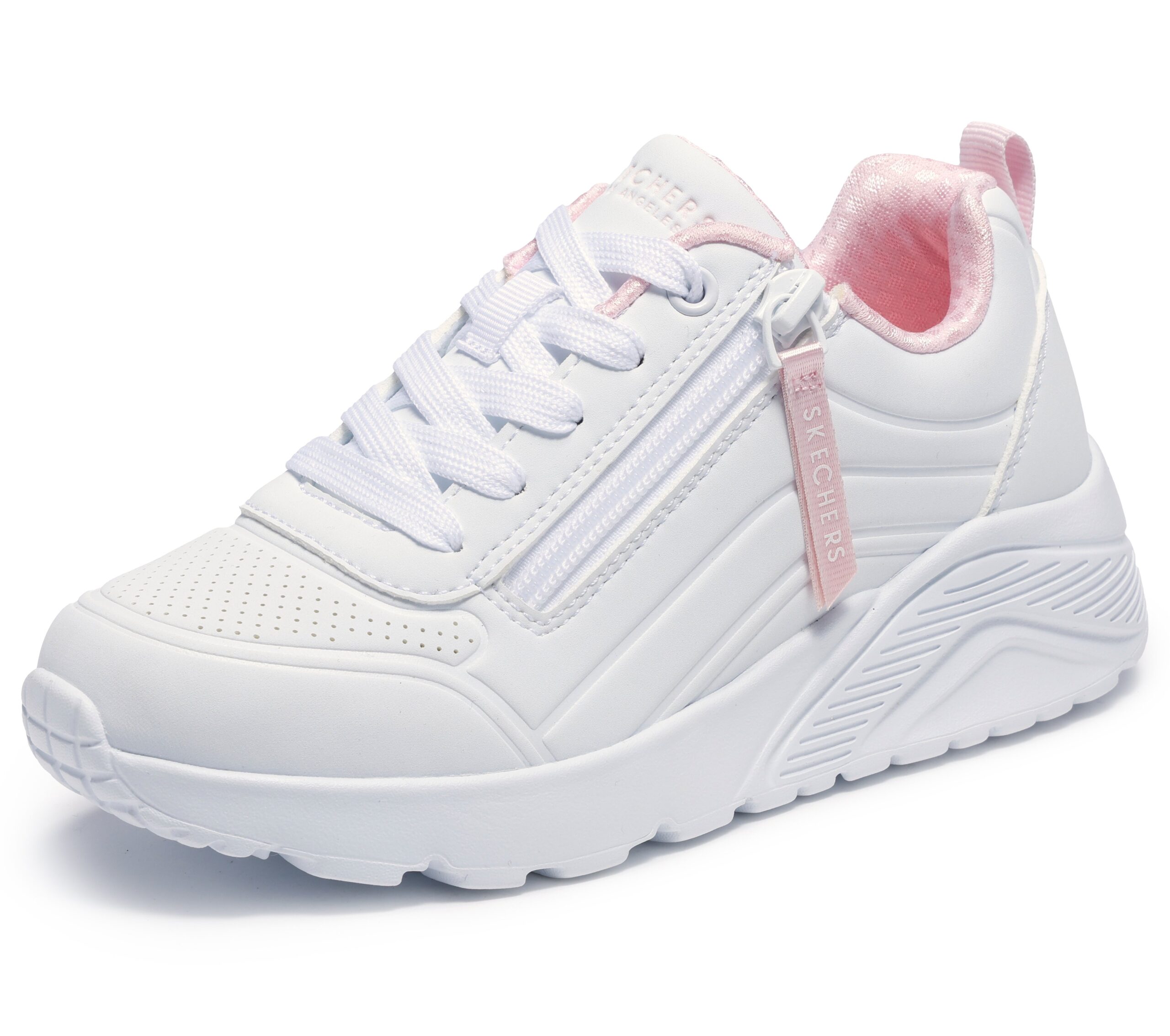 נעלי Skechers UNO לילדים משלבות עיצוב צעיר ונוחות גבוהה, עם ריפוד Air Cooled Memory Foam וסוליה תומכת שמפחיתה זעזועים. מתאימות לשימוש יום־יומי בבית הספר ובפעילויות שונות.