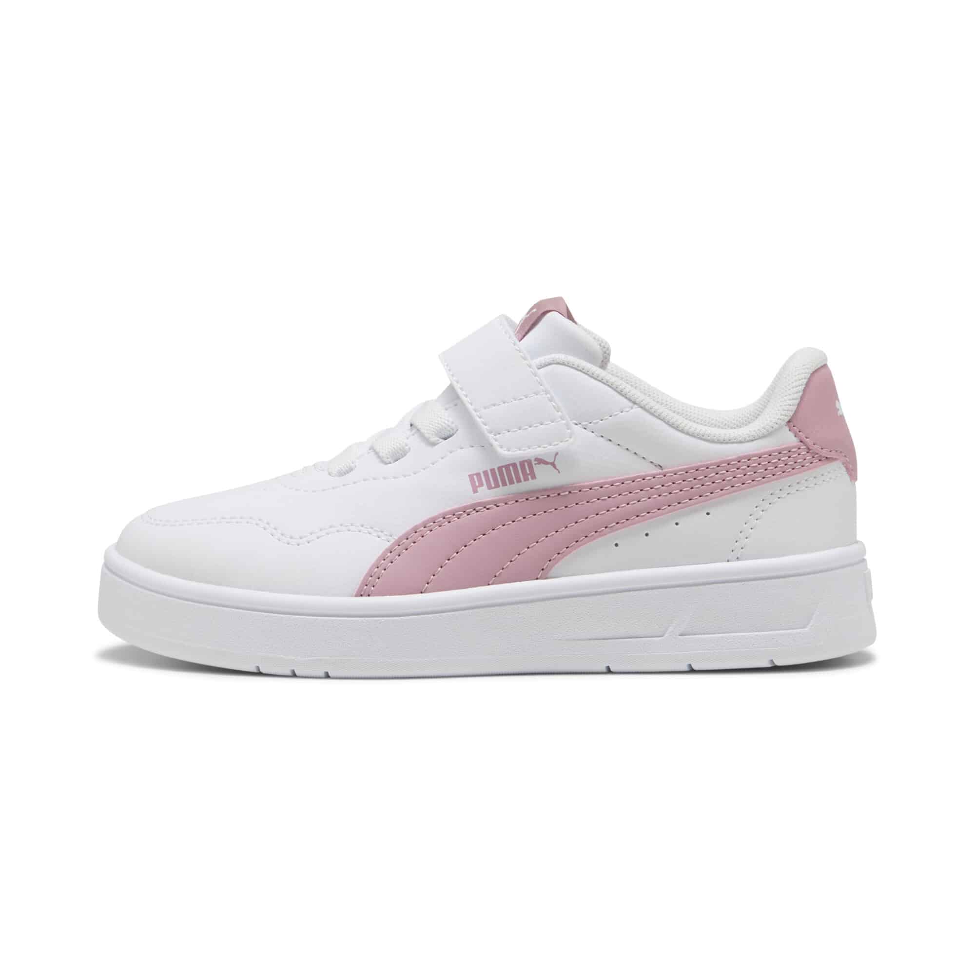 נעלי ילדים Puma Court Lally AC PS 402305-07 הן סניקרס לילדות בעיצוב אופנתי בצבע לבן-ורוד שמוסיף טאץ' עדכני לכל לוק יומיומי.